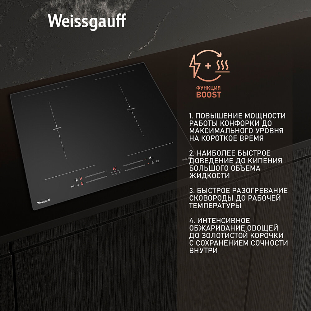 Индукционная варочная панель WEISSGAUFF HI 642 BSCM Dual Flex, независимая, черный 46 888 ₽