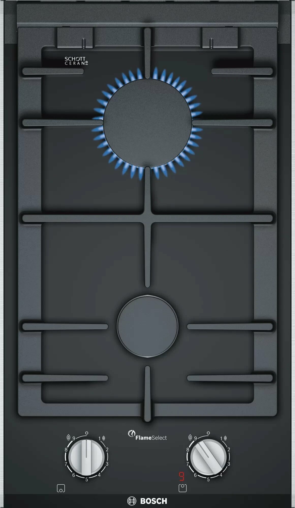 Варочная панель газовая Bosch PRB3A6D70M, конфорок - 2 шт, стеклокерамика, электроподжиг, газ-контроль, черный 45 124 ₽