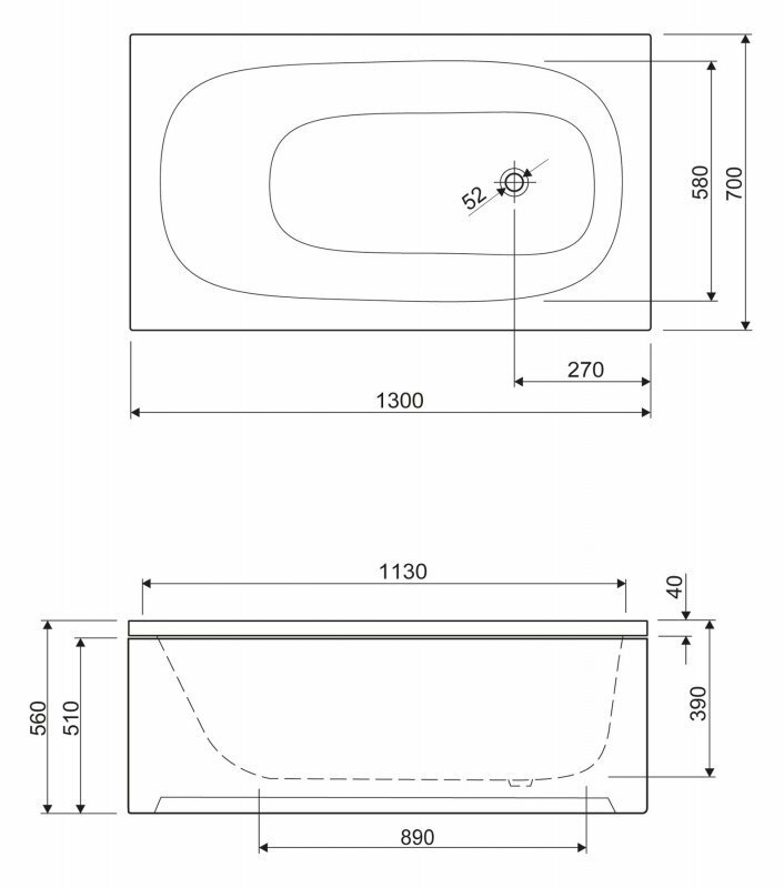 Акриловая ванна ECO-130-70-40-W37 информация: