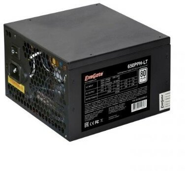 Отзывы на Блок питания 650W ExeGate 650PPH-LT-S, RTL, 80+, ATX, black, APFC, 12cm, 24p, (4+4)p, 5*SATA, 3*IDE, с защитой от выдергивания