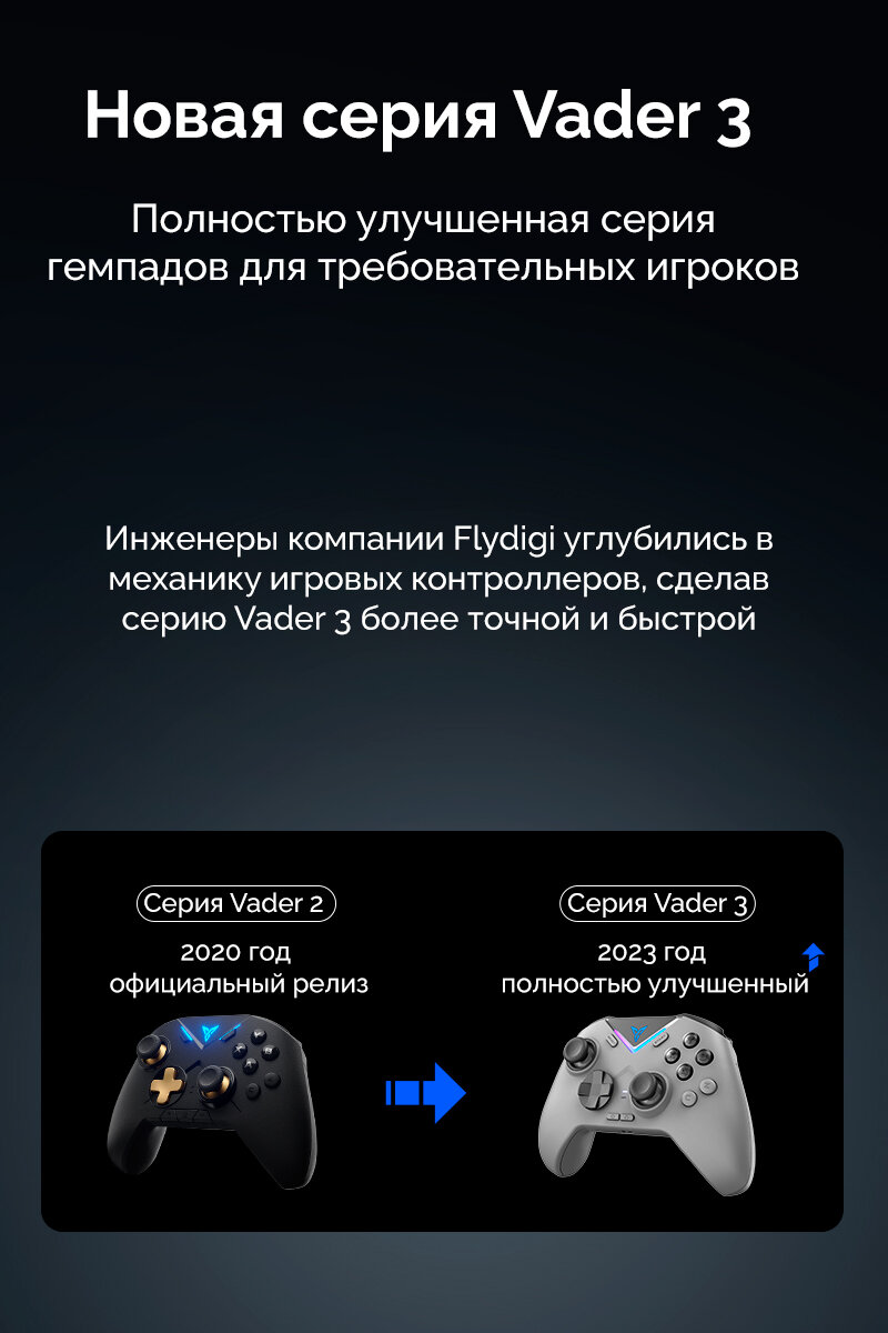 Flydigi Vader 3 - беспроводной кроссплатформенный геймпад (PC, Android, iOS, Nintendo Switch) информация: