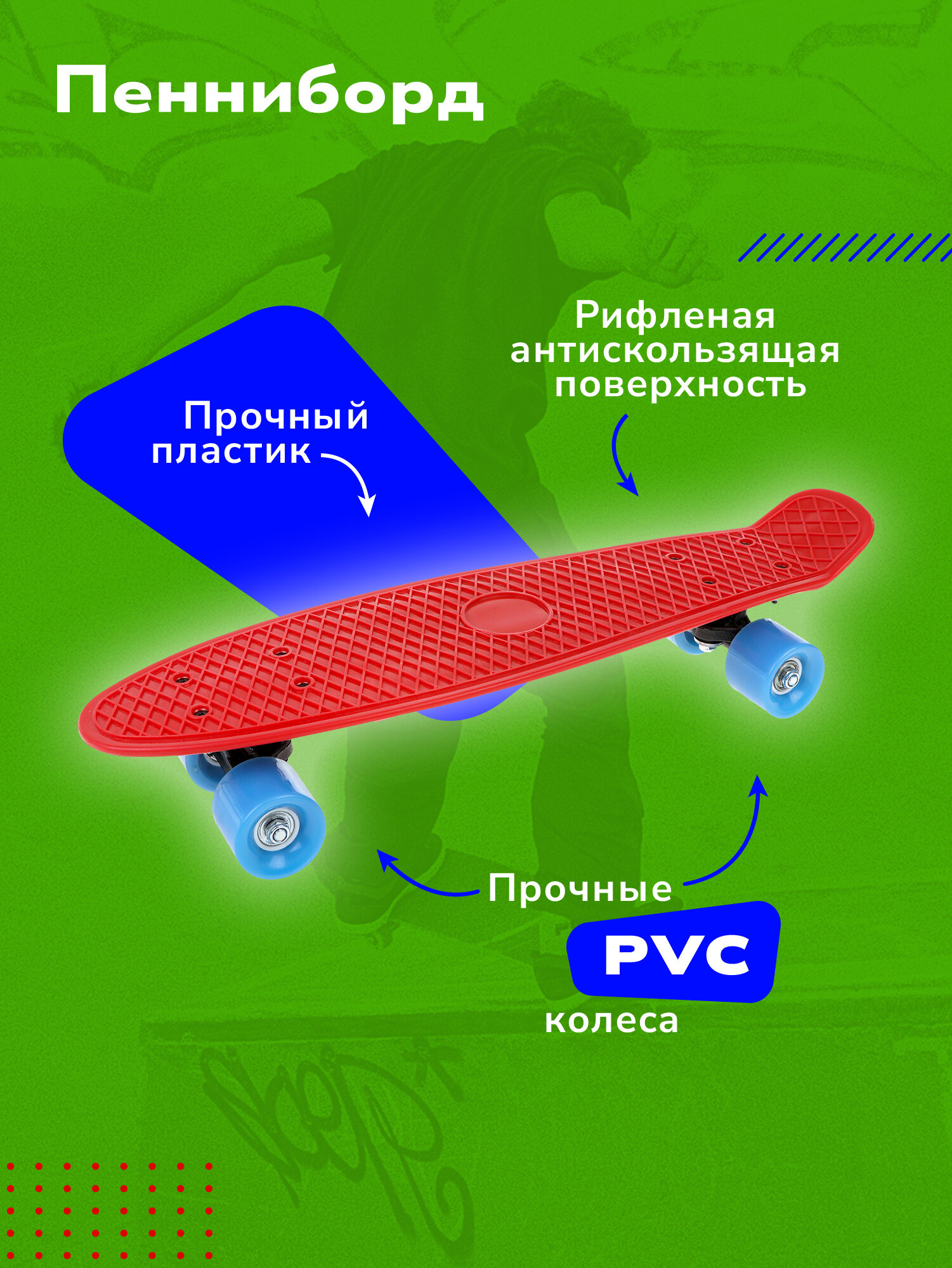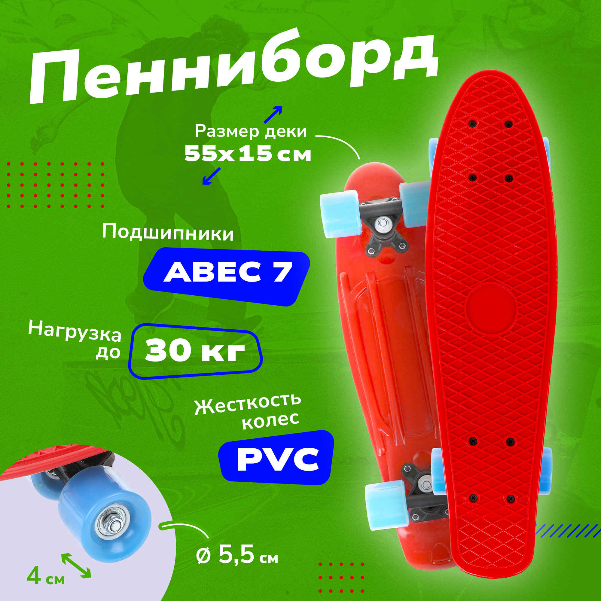 Скейтборд детский, пластик 55x15 см, PVC колеса, красный, нагрузка до 30 кг 655 ₽