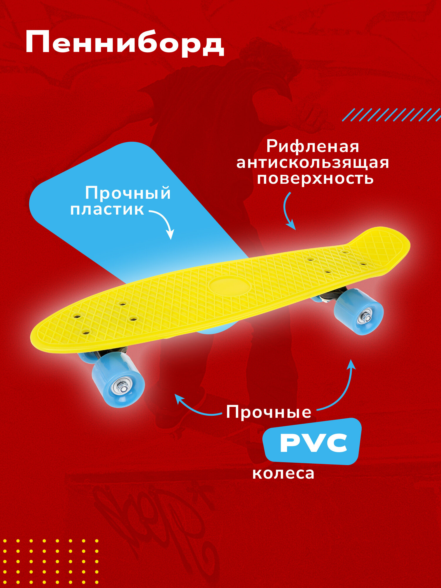 Скейтборд детский, пластик 55x15 см, PVC колеса, жёлтый, нагрузка до 30 кг 772 ₽