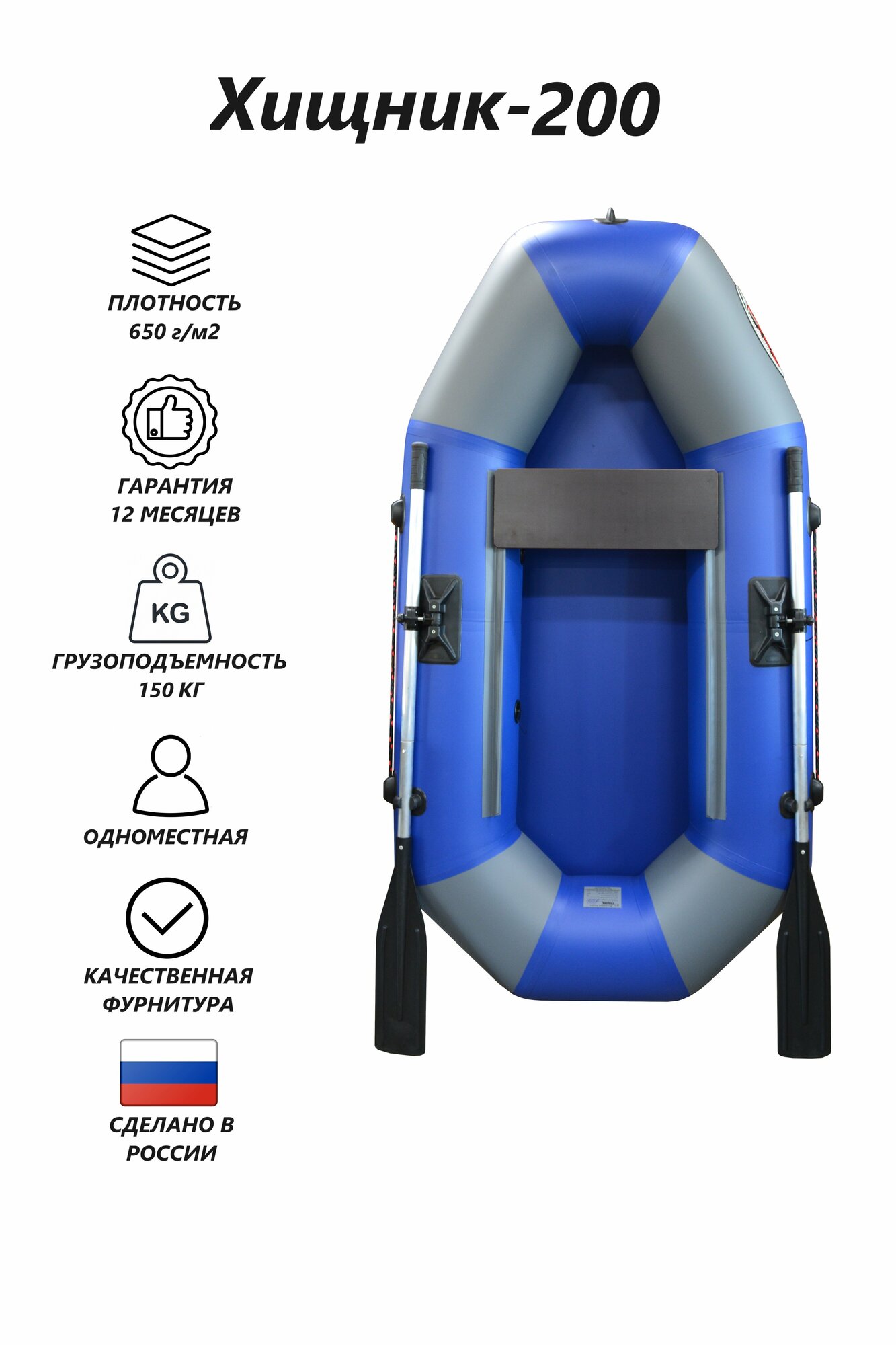 Надувная ПВХ лодка Хищник-200 (синий, серый) информация: