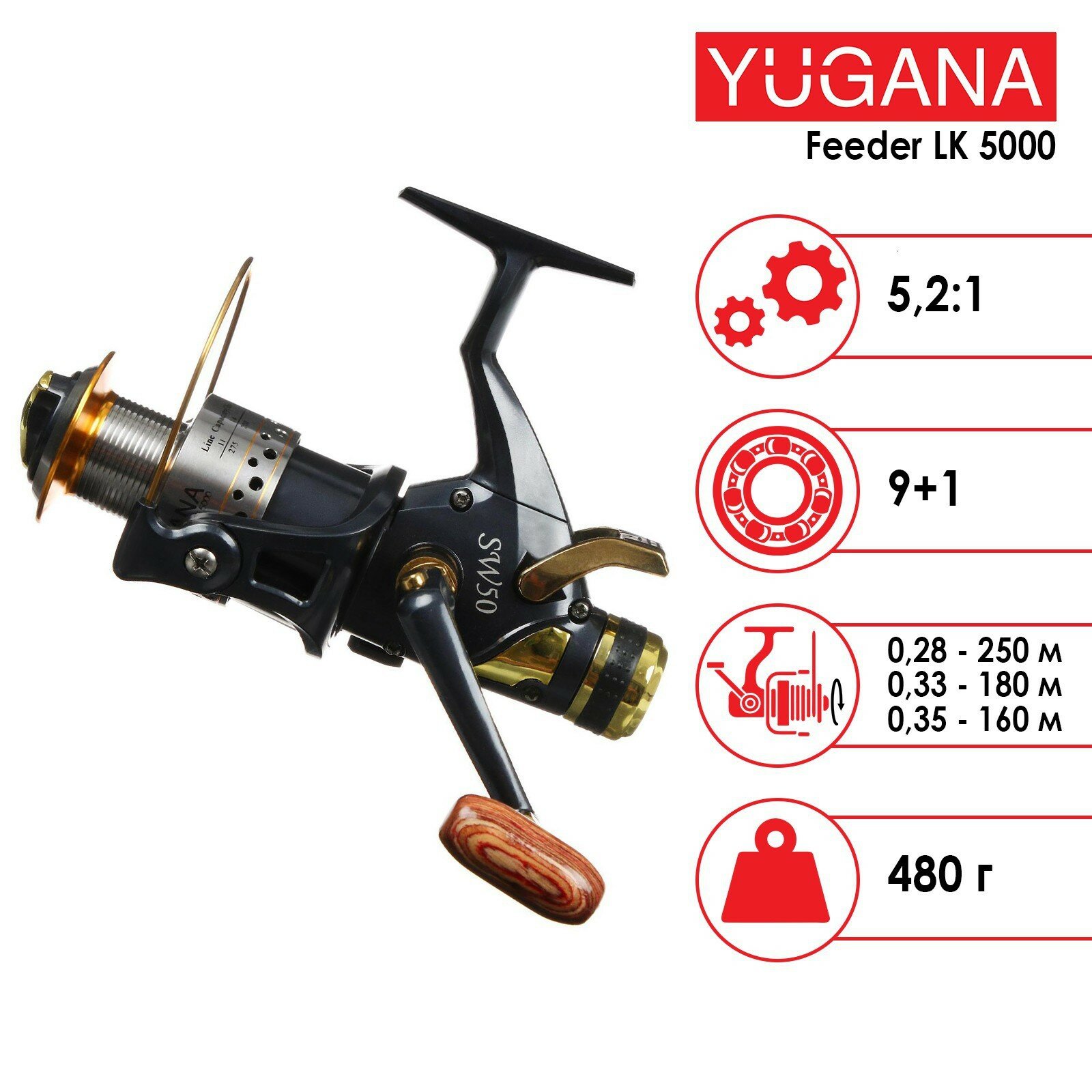 Катушка YUGANA Feeder LK 5000 9+1 подшипник, 5.2:1 информация: