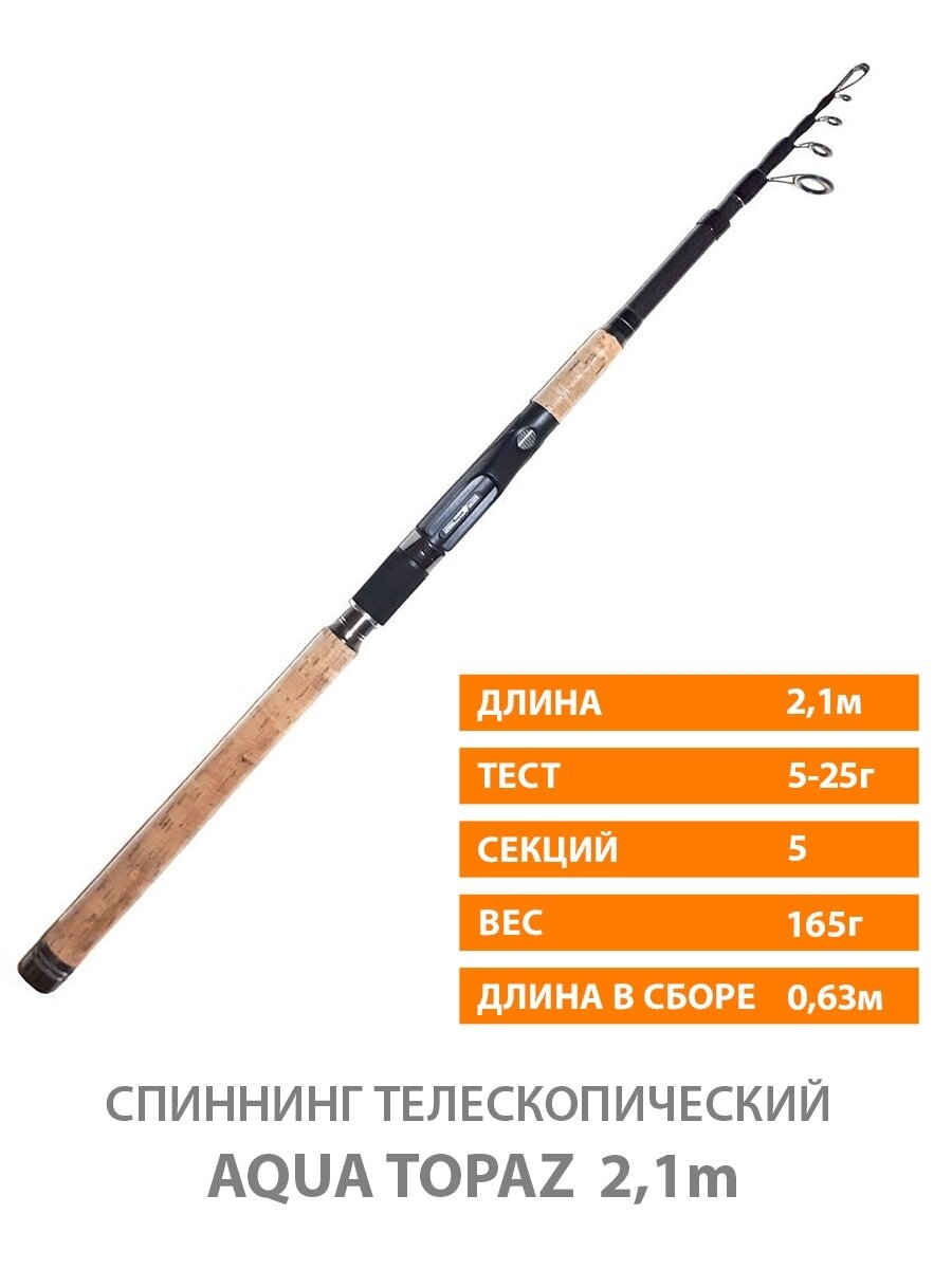 Удилище телескопическое AQUA Topaz, длина 2,10 метра, тест 5-25 грамм 3 062 ₽