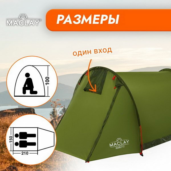 Палатка туристическая HARLY 2, р. 210х150х100 см, 2-местная, однослойная информация: