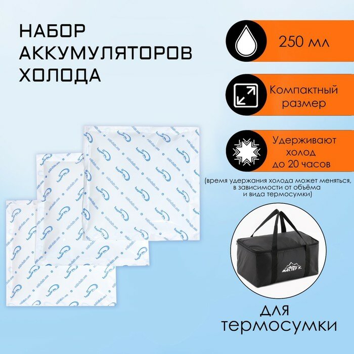 SUI Набор аккумуляторов холода - гелевый хладоэлемент для термосумки, до 20 ч, 3 шт по 250 мл информация: