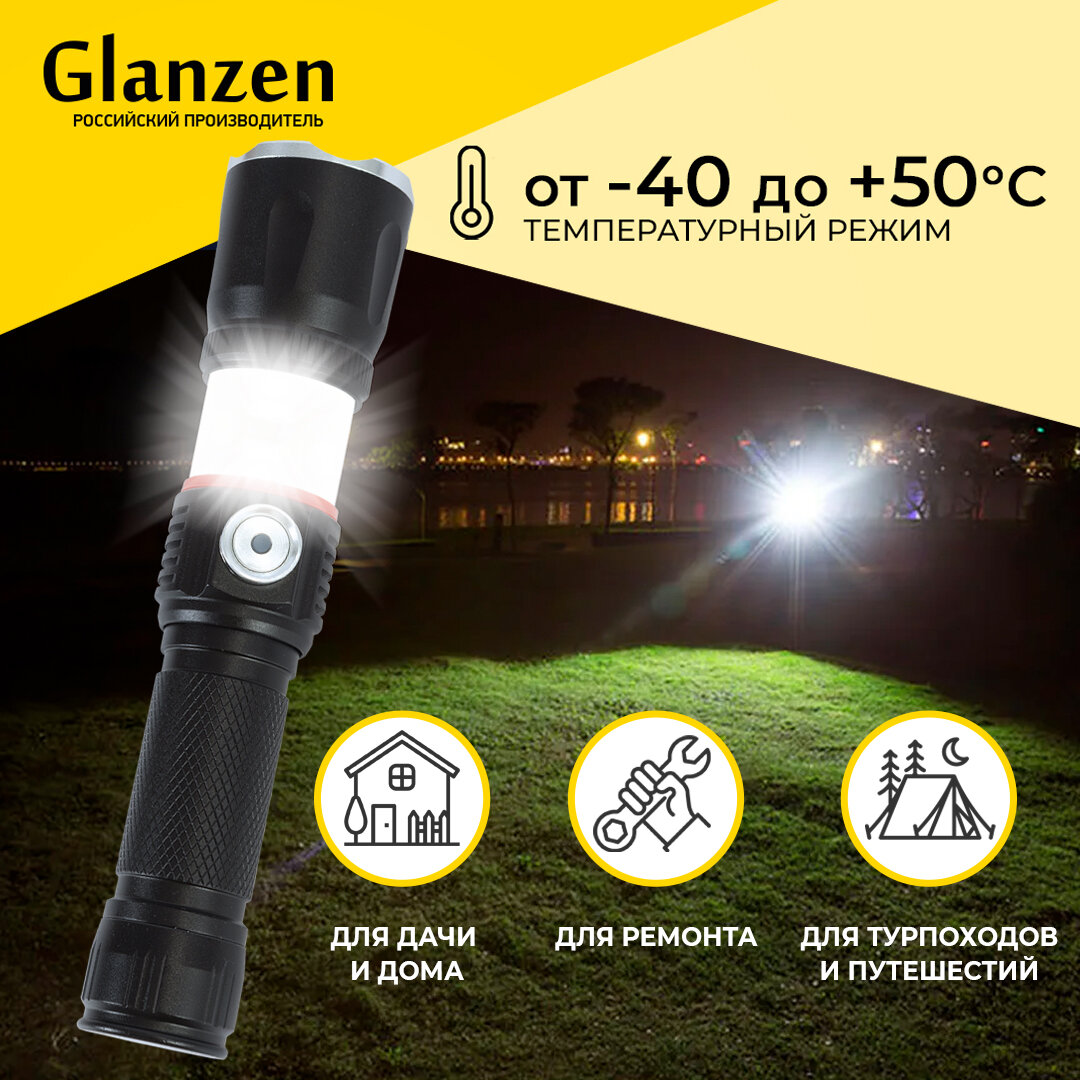 Отзывы на Светодиодный ручной аккумуляторный USB фонарь GLANZEN UFL-0300-03