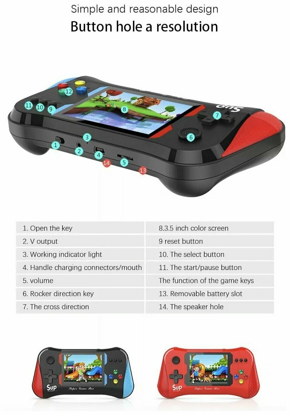 Портативная игровая приставка SUP X7M 500in1+джойстик, черный информация: