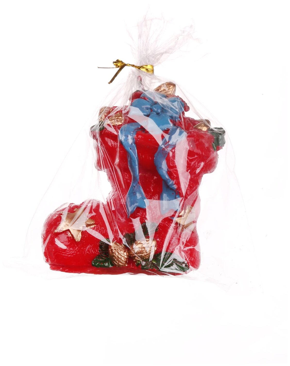 Новогодняя свеча Золотой сапожок с подарками из парафина / 8х5.5х8см арт.78335
