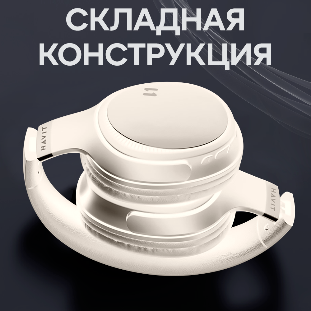 Наушники беспроводные HAVIT H655BT с микрофоном, активным шумоподавлением, увеличенным временем работы, игровые, бежевые 4 890 ₽