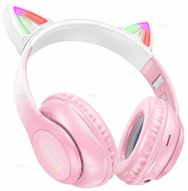 hoco Беспроводные детские наушники с кошачьими ушками светящиеся Hoco W42 Premium розовые Розовый