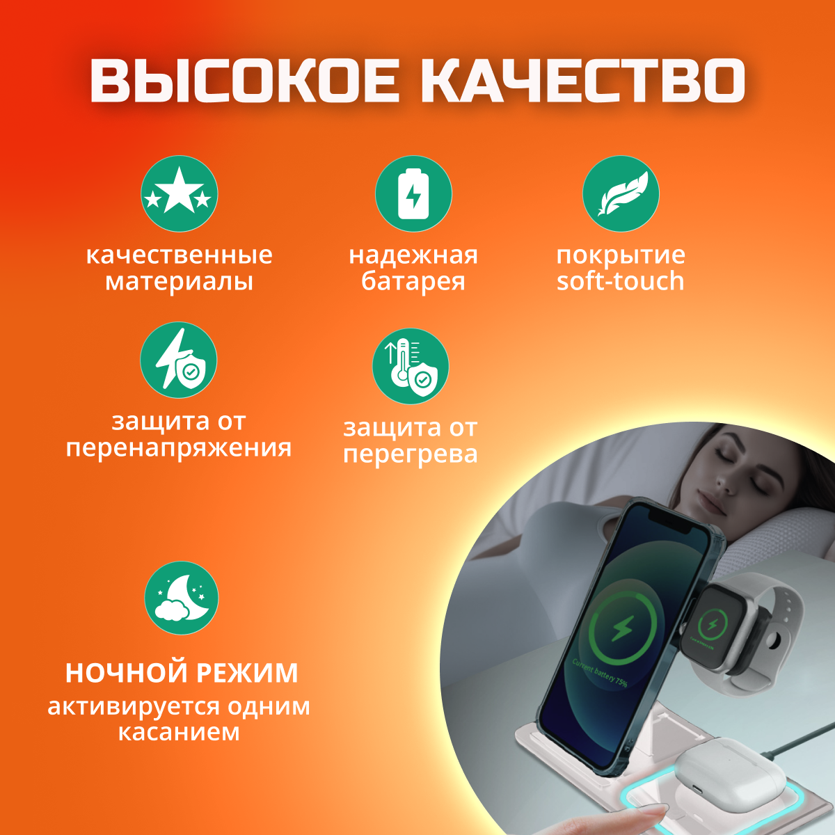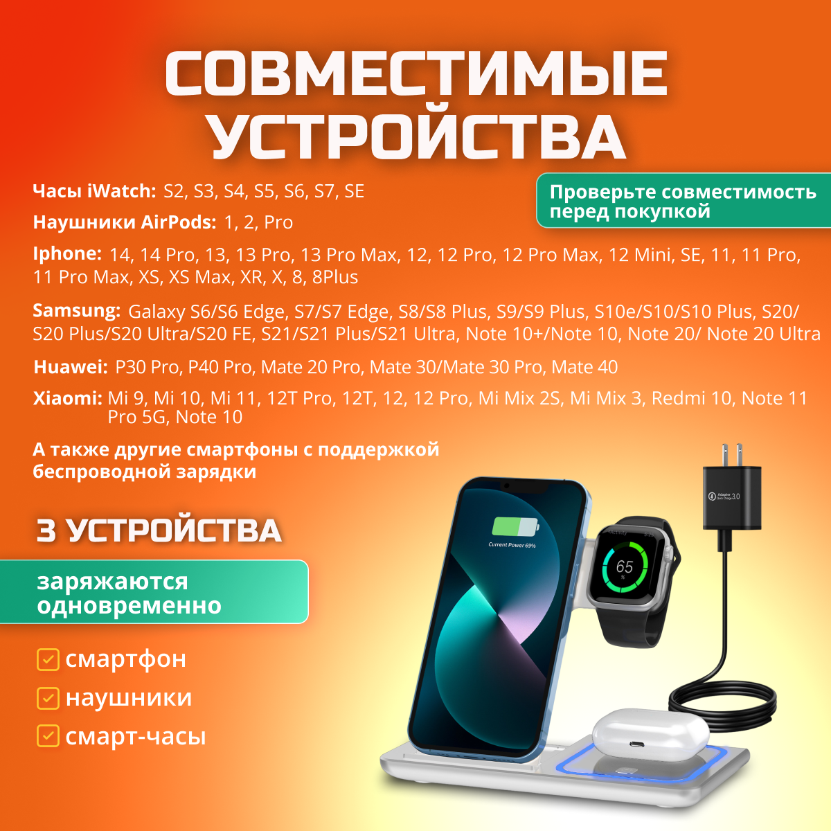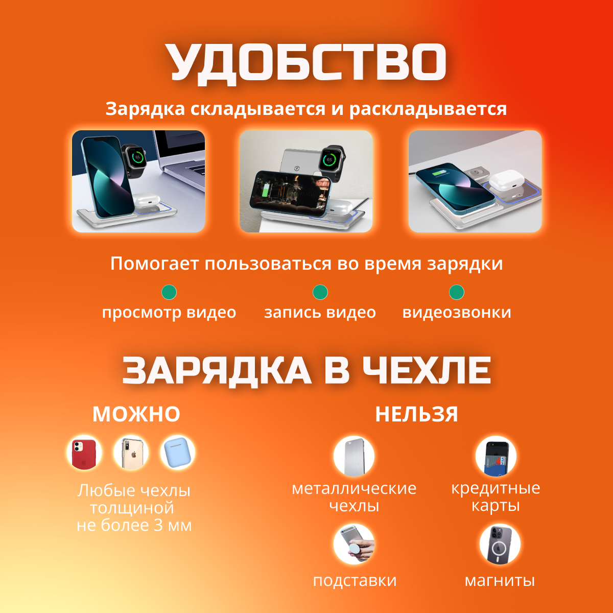 Беспроводная зарядка 3 в 1 | Смартфон, наушники, часы информация: