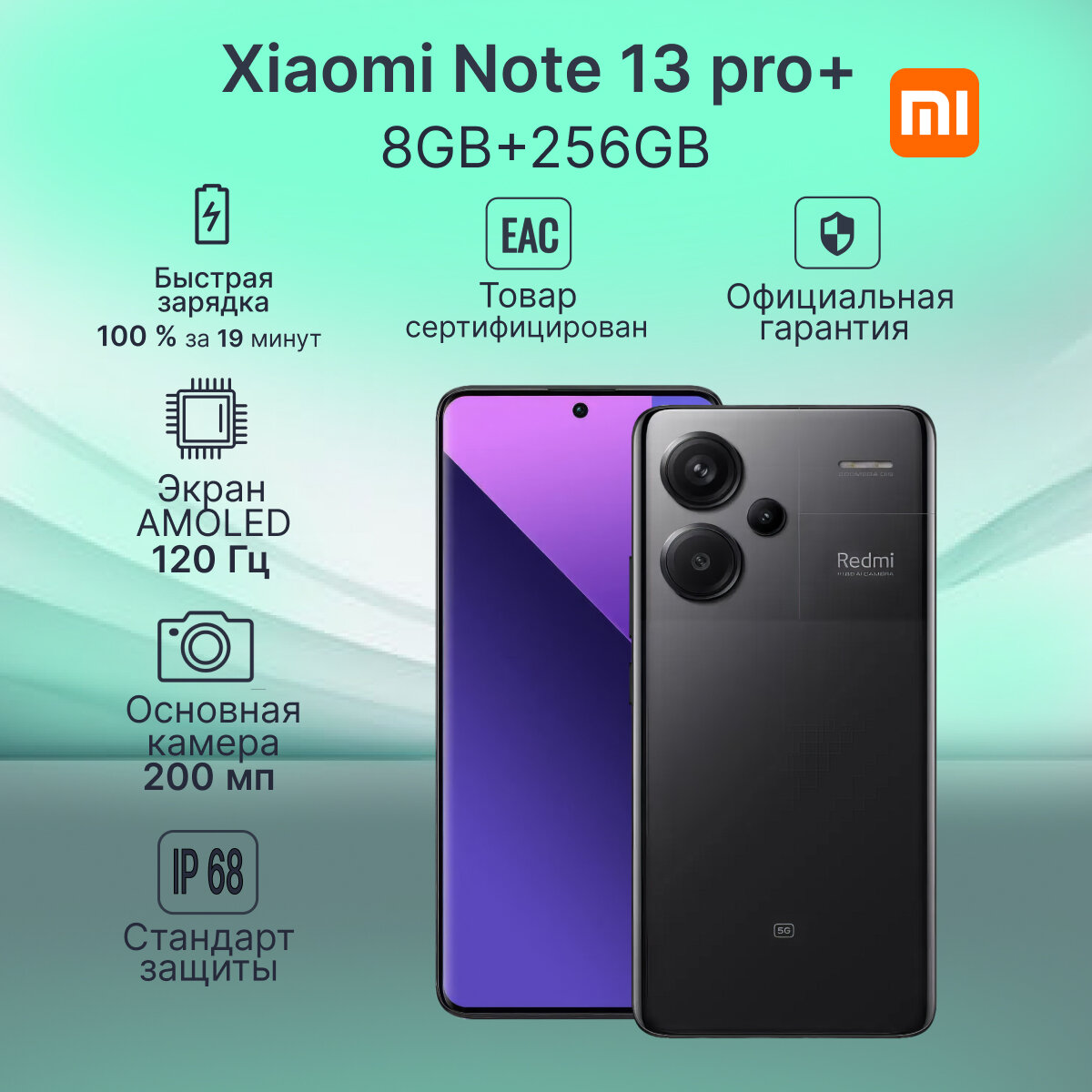 Смартфон Xiaomi Redmi Note 13 Pro+ 8/256 ГБ RU, Dual: nano SIM + eSIM, midnight black информация:
