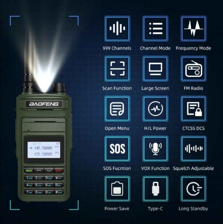 Отзывы на Рация Baofeng UV-999 ProMax 10 Вт класс водонепроницаемости IP X4 с гарнитурой, тангентой и тактической антенной 48см в комплекте цвет зеленый