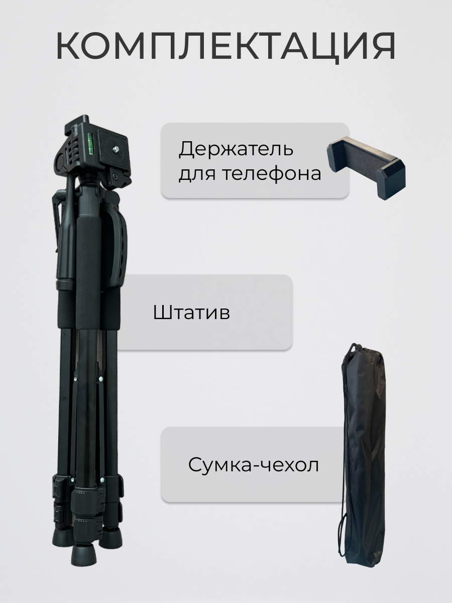 Штатив для фотоаппарата, телефона для съемки универсальный, напольный 50-140 см с держателем для телефона / Трипод для смартфона, камеры, видеокамеры, проектора информация: