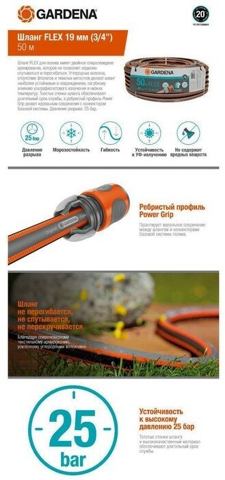 Шланг Gardena FLEX 19 мм (3/4"), 50 м 18055-22.000.00 информация:
