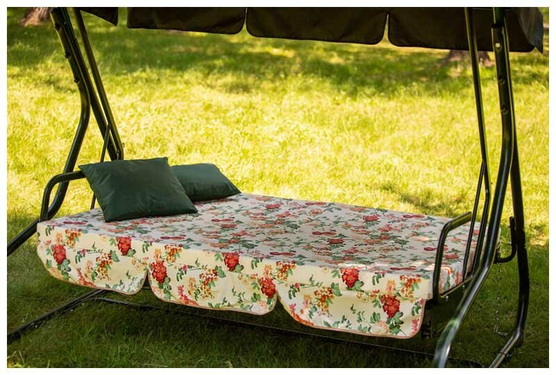 Качели садовые 3-х местные Мебельторг Варна Каркас зеленый/Разноцветный рис. листья