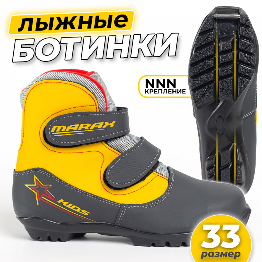 Ботинки лыжные детские MARAX MXN-Kids с креплением NNN, размер 33, серо-желтый информация: