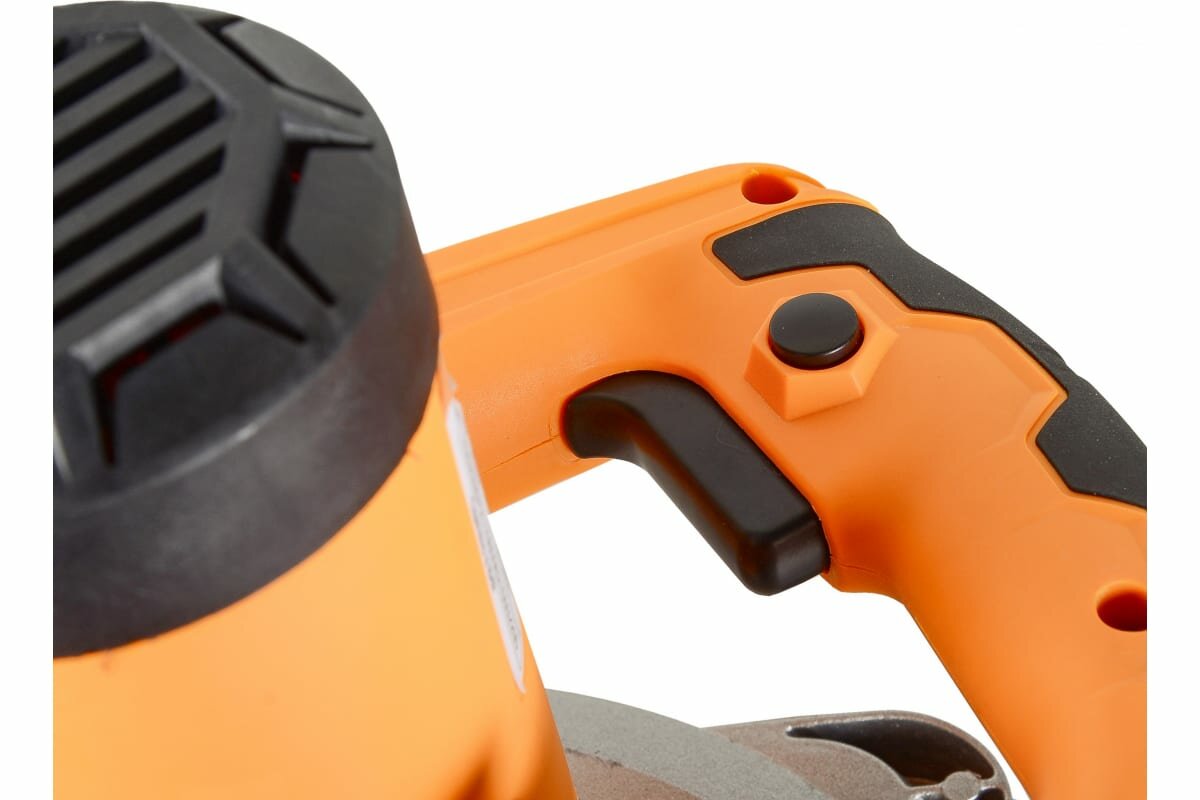 | Особенности конструкции | блокировка кнопки включения, возможность подключения пылесоса, возможность работы с направляющей шиной, прорезиненная рукоять |