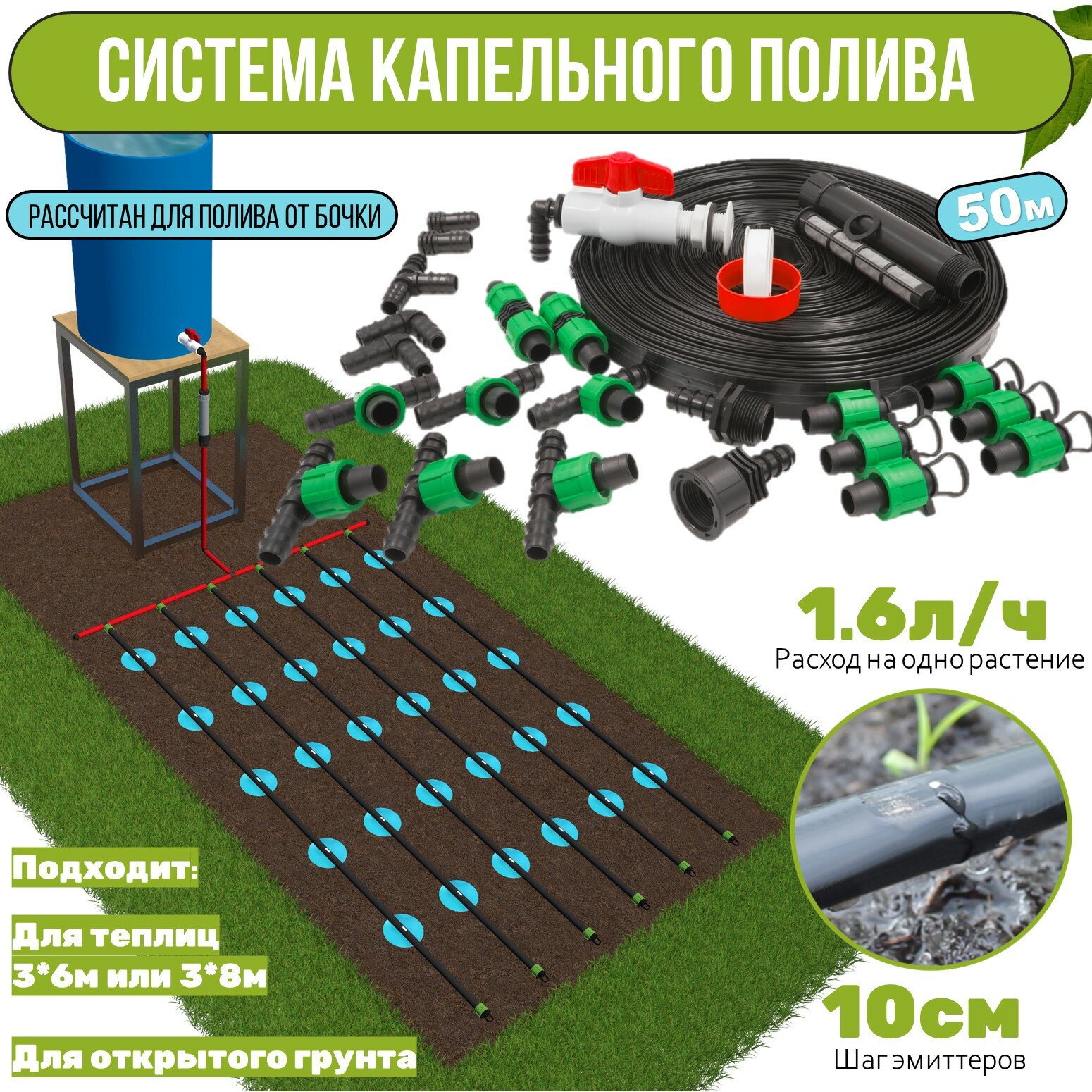 10 цен на Набор полива с капельной лентой на 500 растений. 50м, 6 линий. Модель GS.001A