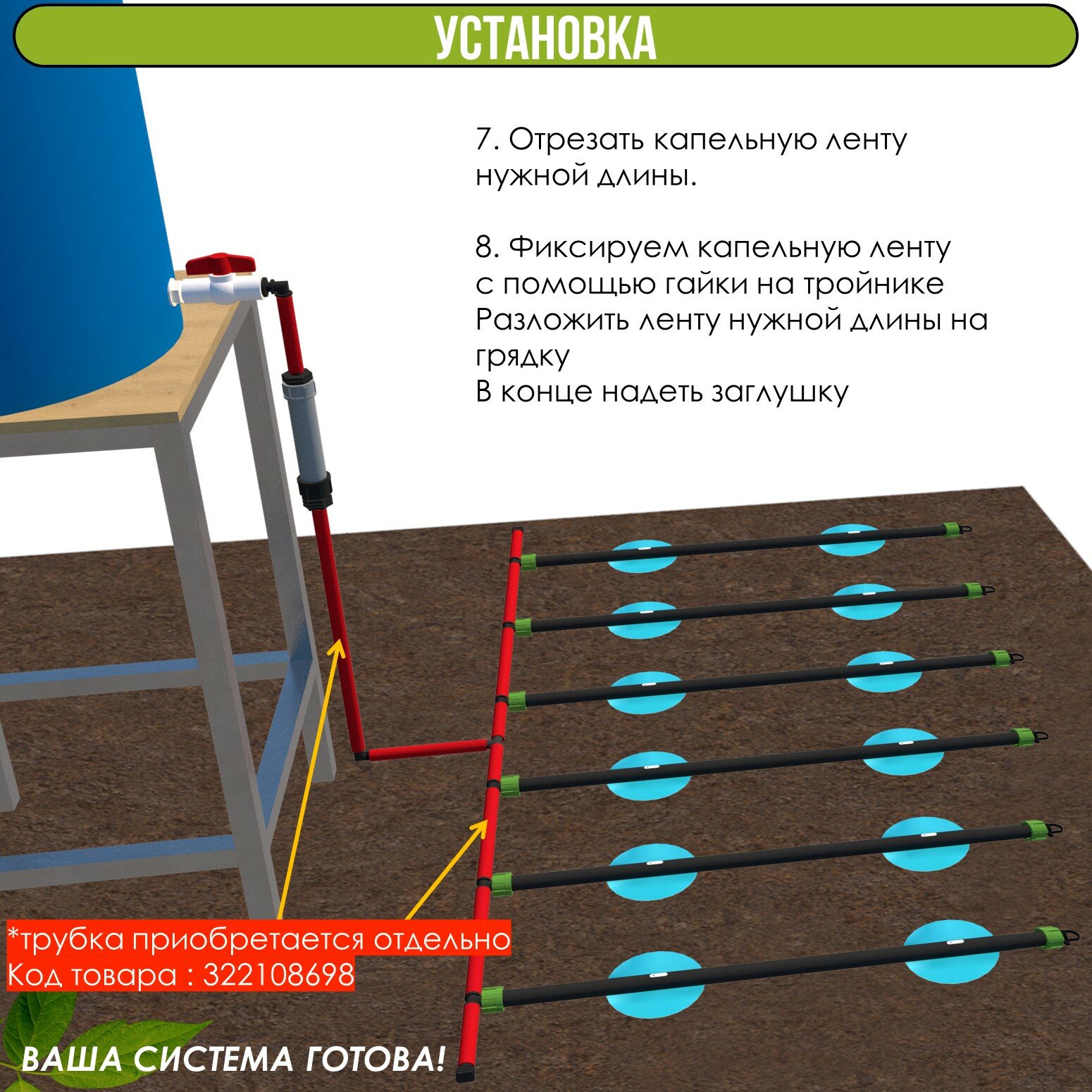 10 цен на Набор полива с капельной лентой на 250 растений. 50м, 6 линий. Модель GS.002A