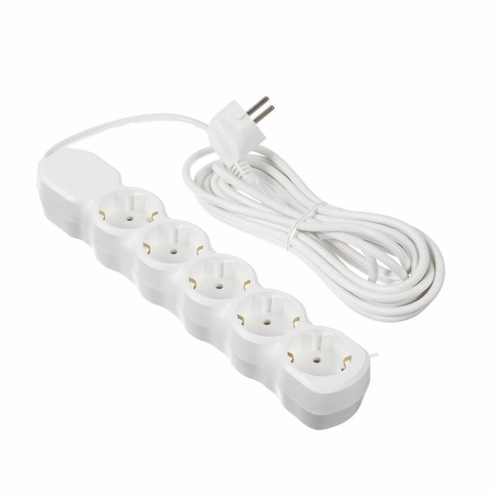 Удлинитель Luazon Lighting ECO, 5 розеток, 5 м, 10 А, 2200 Вт, ПВС 3х0.75 мм2, с з/к, белый 1 288 ₽