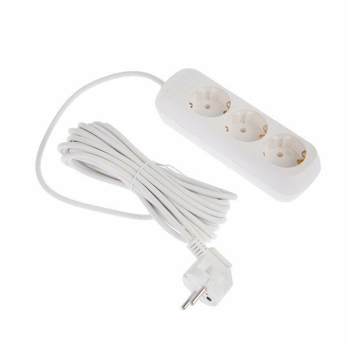 Отзывы на Удлинитель 3 розетки, 7 м, 10 А, 2200 Вт, ПВС 3х0.75 мм2, с з/к, белый