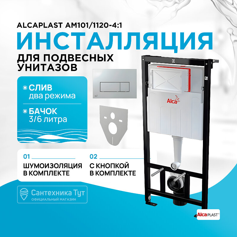 Отзывы на Инсталляция Alcaplast AM101/1120-4:1 RU M571-0001 для унитаза с клавишей смыва Хром глянец
