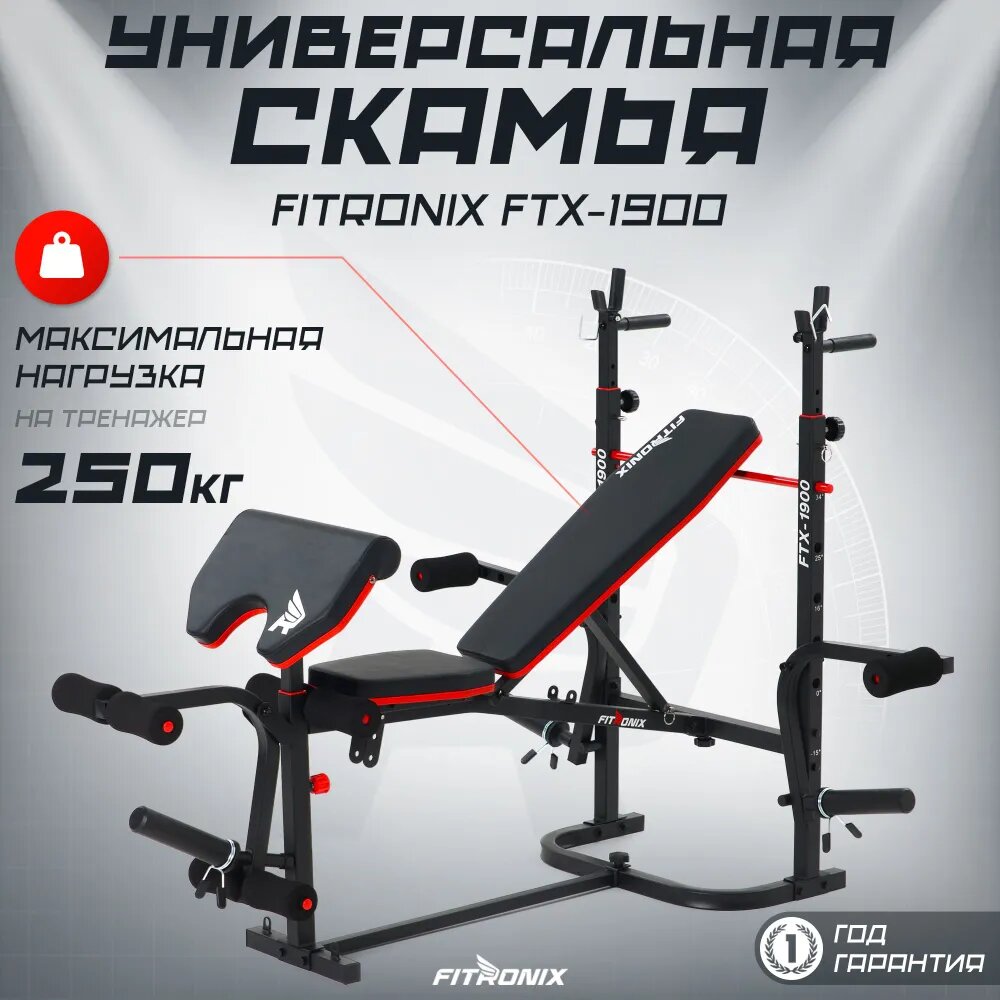 10 цен на Скамья для жима и пресса спортивная складная со стойками FITRONIX FTX-1900 для штанги