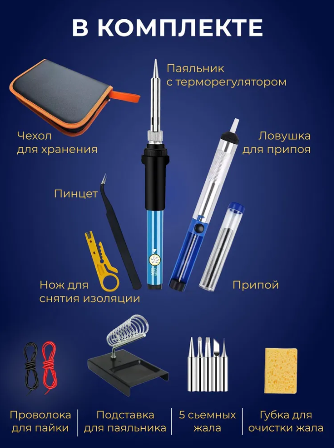 10 цен на Паяльник электрический 60 Вт, паяльный набор