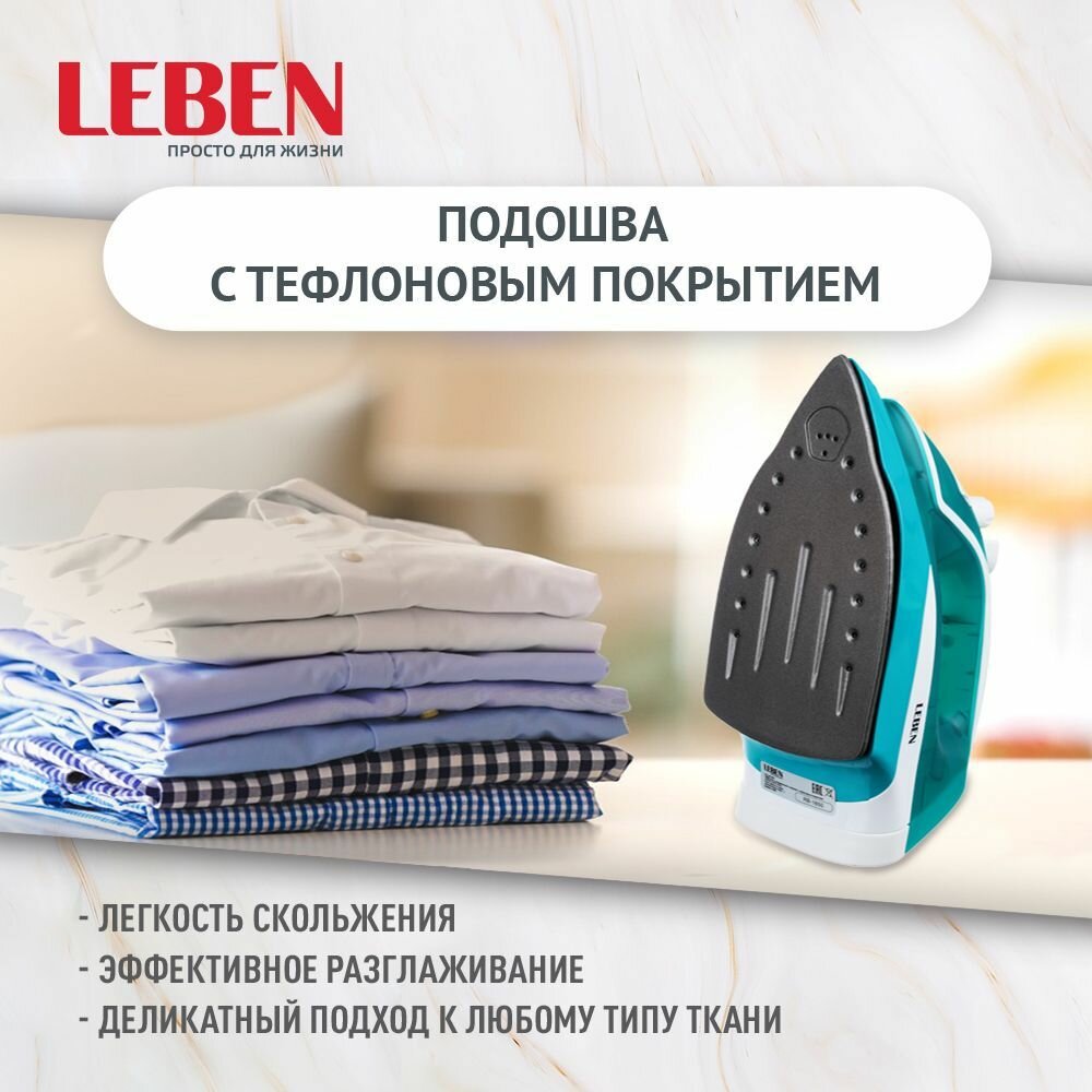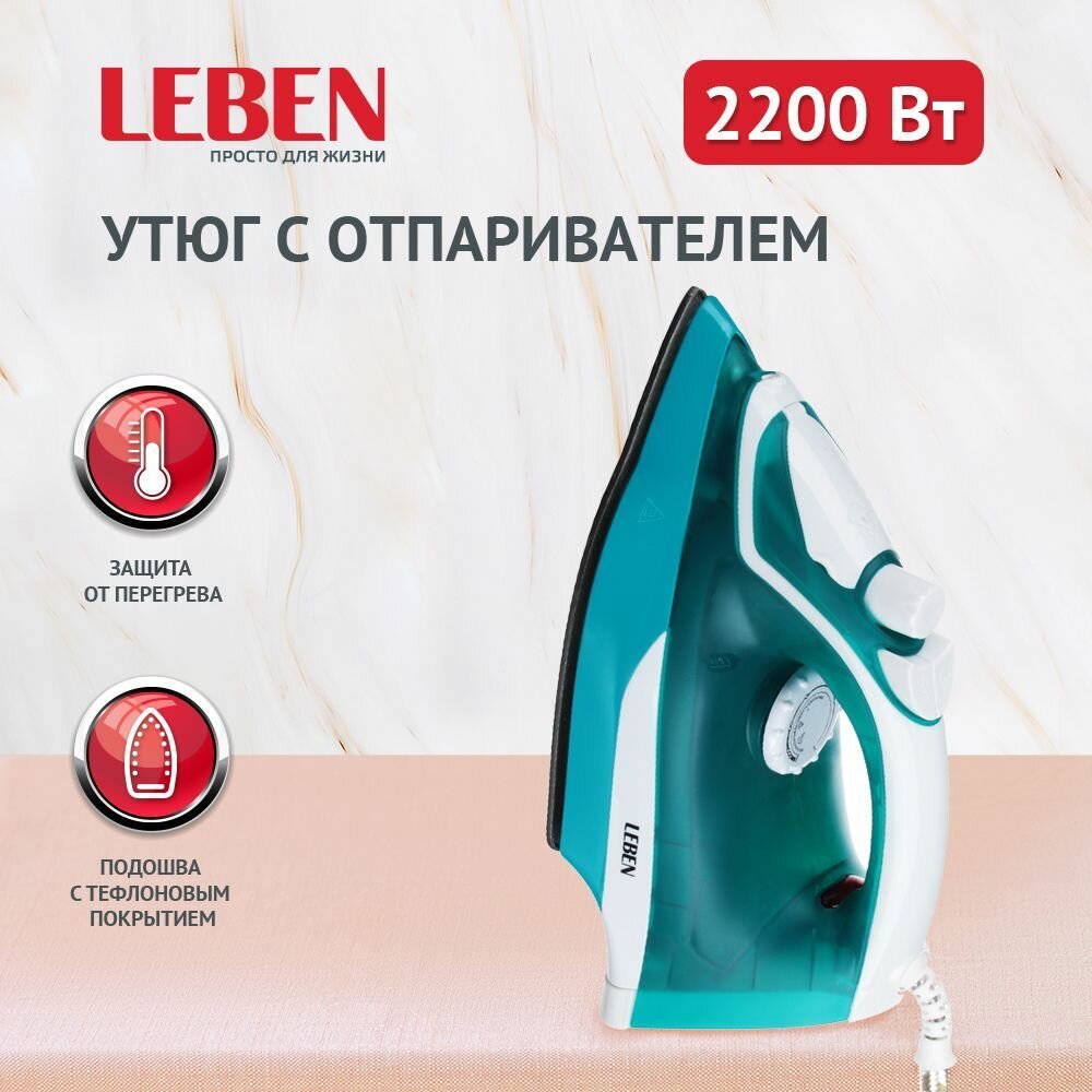 Утюг электр 2200W с отпариват.,подошва с тефл.покр.,голубой Leben информация: