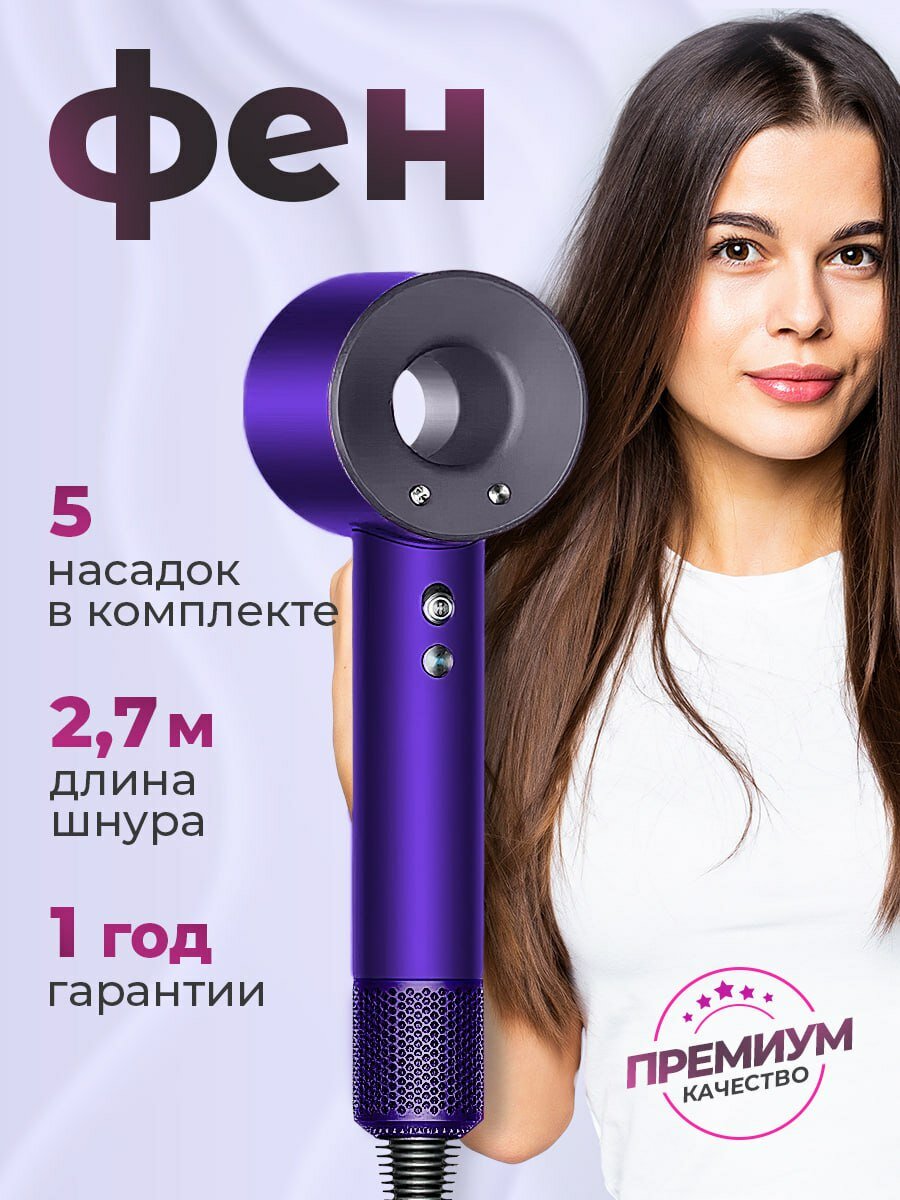 Профессиональный фен для волос iHair-1600 Super Hair Dryer 1600 Вт, 3 режима, 5 магнитных насадок, ионизация воздуха, фиолетовый 3 358 ₽