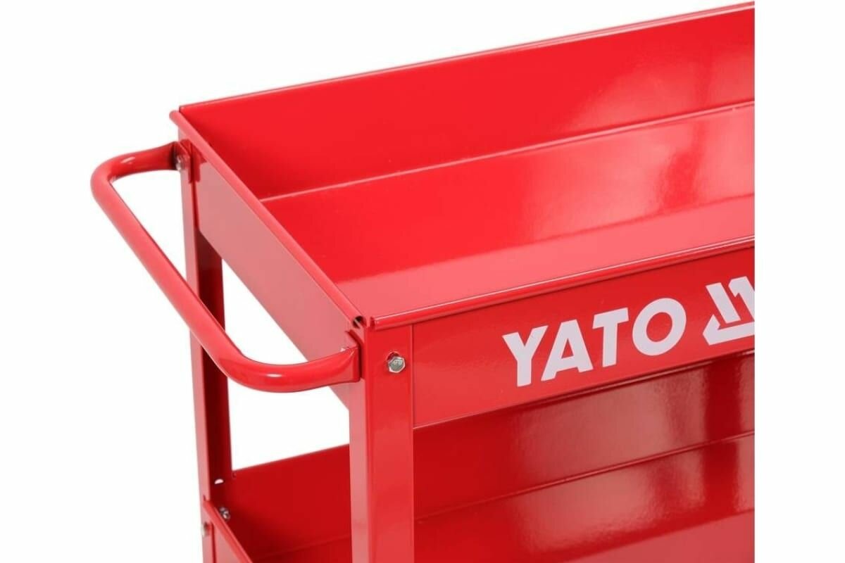 Отзывы на YATO YT55210 Теежка дя инструментов 3 открытые поки, поворотные коеса с тормозом, порошковая окраска, ручка, грузоподъемность 130 кг