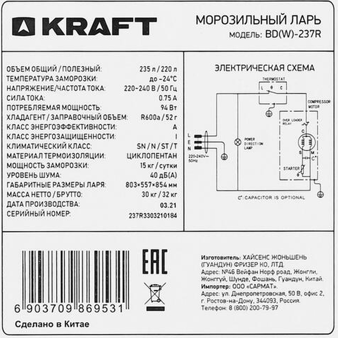 Морозильный ларь Kraft BD(W) 152 QX (работа в режиме холодильника) информация: