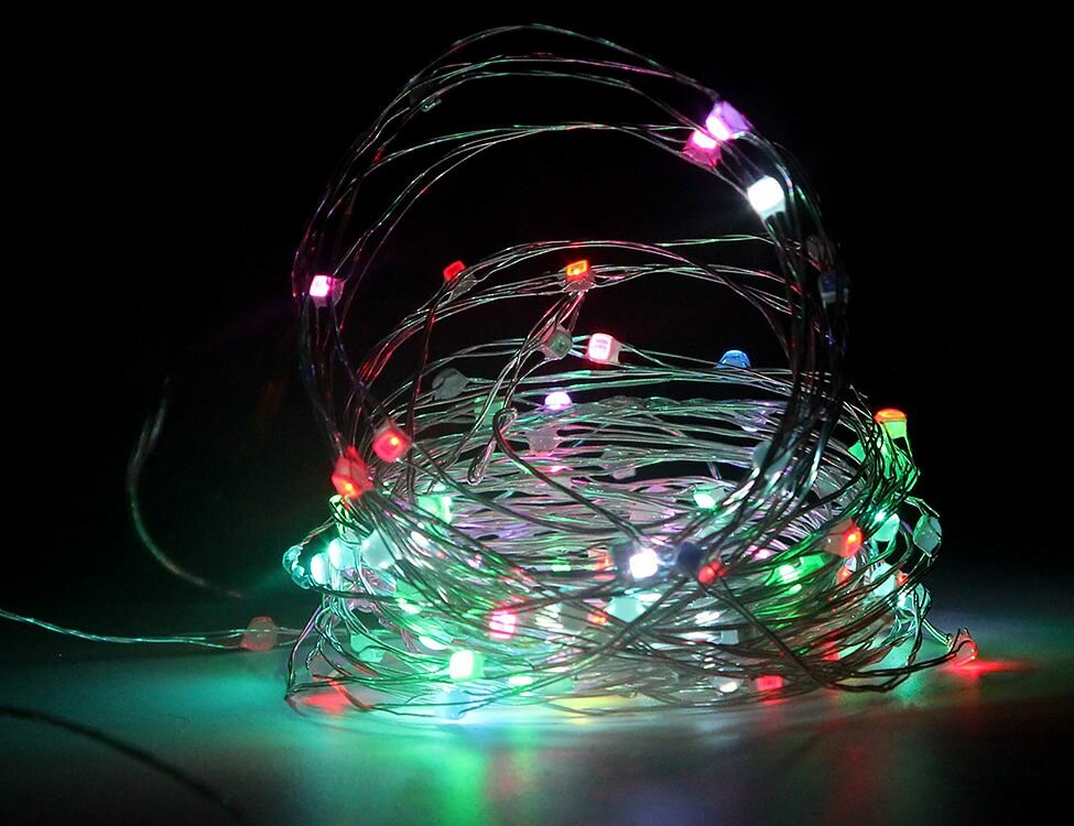 Отзывы на Электрогирлянда мерцающая радужная нить (роса), 120 ультра ярких RGB mini LED-ламп на серебряной проволоке, 12+1.5 м, уличная, SNOWHOUSE LDMS120-RGB