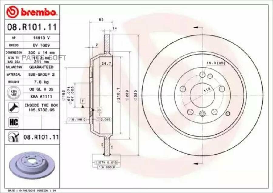 Тормозной диск, BREMBO 08.R101.11 (2 шт.) информация: