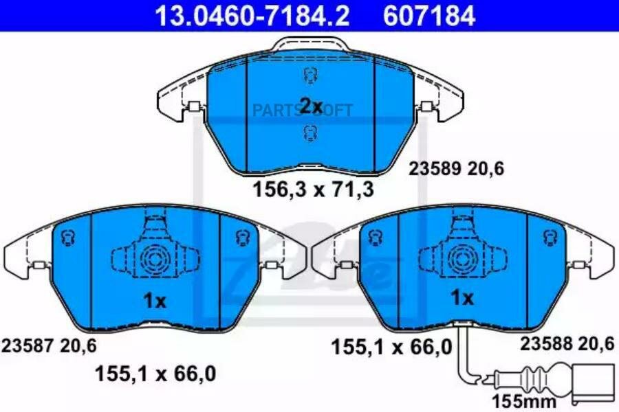 Колодки тормозные дисковые передн, AUDI: A1 1.2 TFSI/1.4 TFSI/1.6 TDI/2.0 TDI/2.0 TFSI quattro 10-, A1 Sportback 1.2 TFSI/1.4 TFSI/1.6 TDI/2.0 TDI 11-, A3 1.2 TSI/1.4 TFSI/1.6 ATE 13.0460-7184.2 | цена за 1 шт