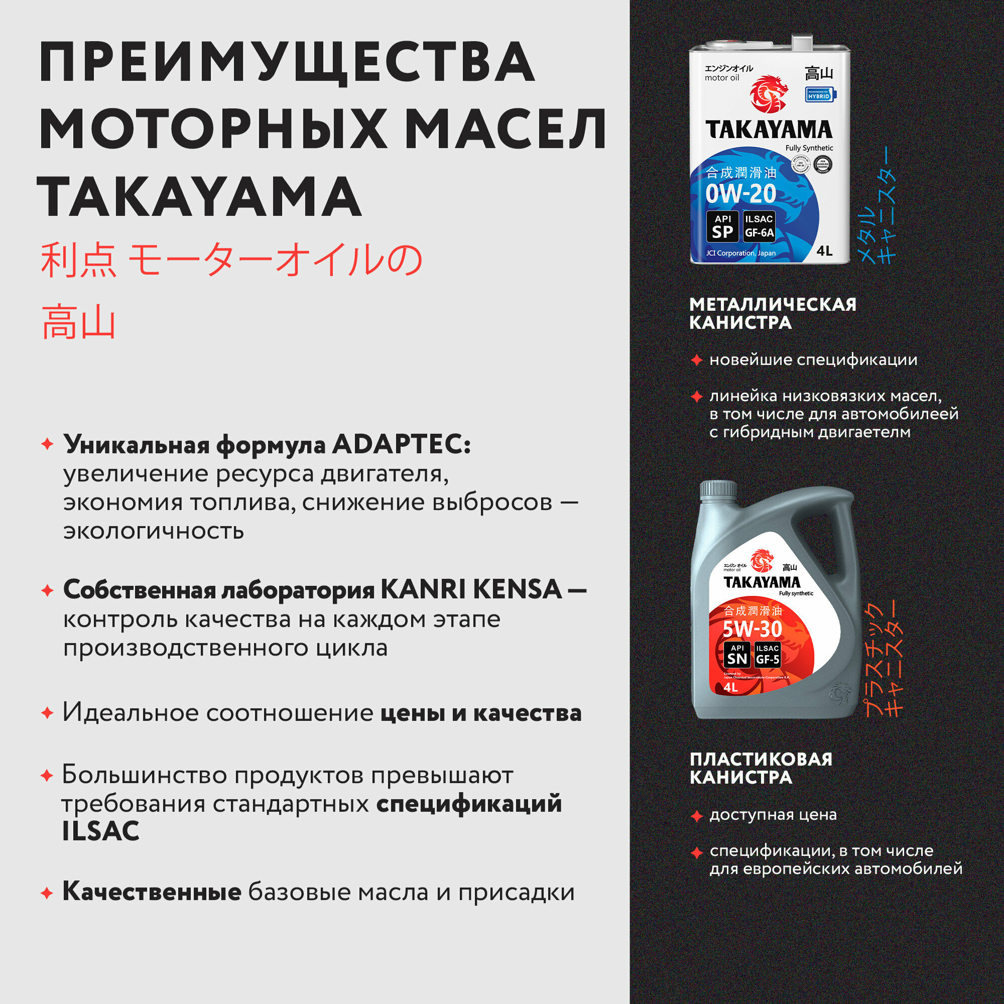Моторное масло TAKAYAMA SAE 0W-20, ILSAC GF-5, API SN Синтетическое 4 л