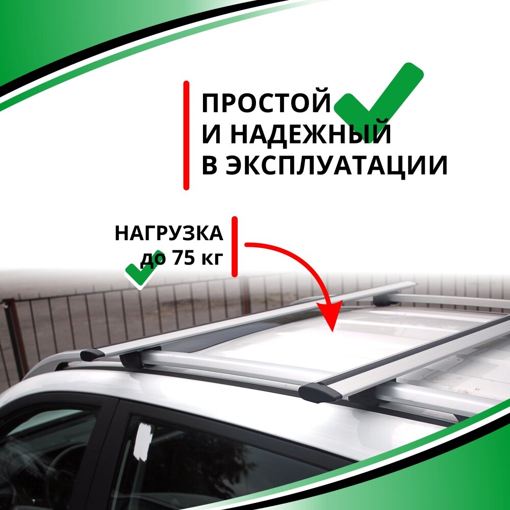 Багажник Atlant (Атлант) для Renault Logan 5-дв. универсал 2007-н.в. на рейлинги (эконом-класс, аэродинамическая дуга) Арт. 8810+6013