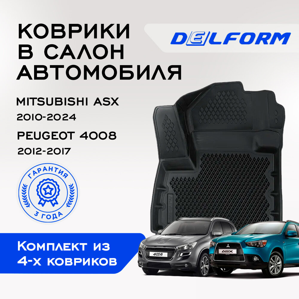 Коврики EVA/ЭВА 3D/3Д Mitsubishi ASX/ Митсубиси АСХ (2010-2024)/Peugeot /Пежо 4008 (2012-2017) Premium Delform/ в машину авто салон/ набор ковриков для автомобиля