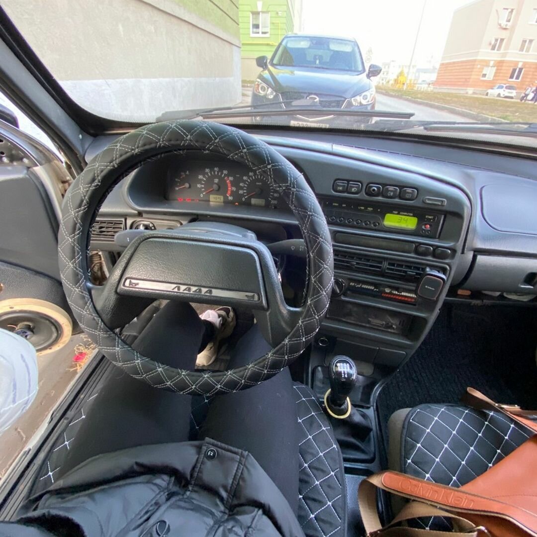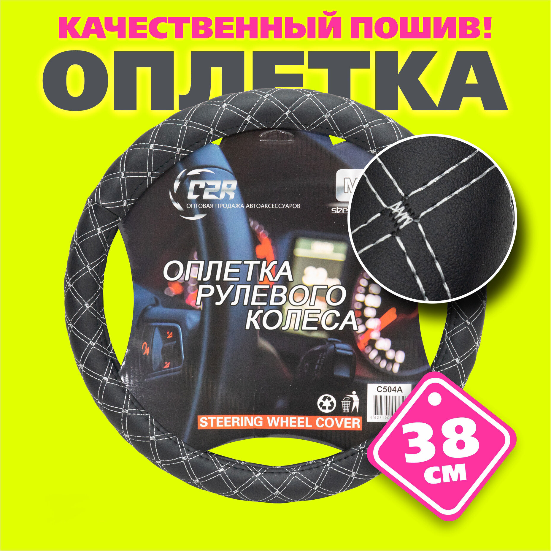 10 цен на Оплетка (чехол) на руль автомобиля Ваз, Лада, Иномарки, размер М (38см) Черный + белый ромбик