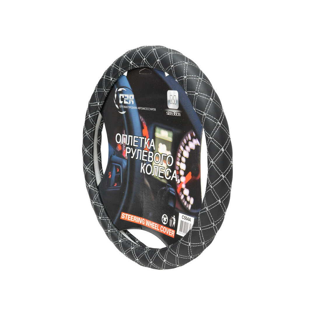 Оплетка (чехол) на руль автомобиля Ваз, Лада, Иномарки, размер М (38см) Черный + белый ромбик информация: