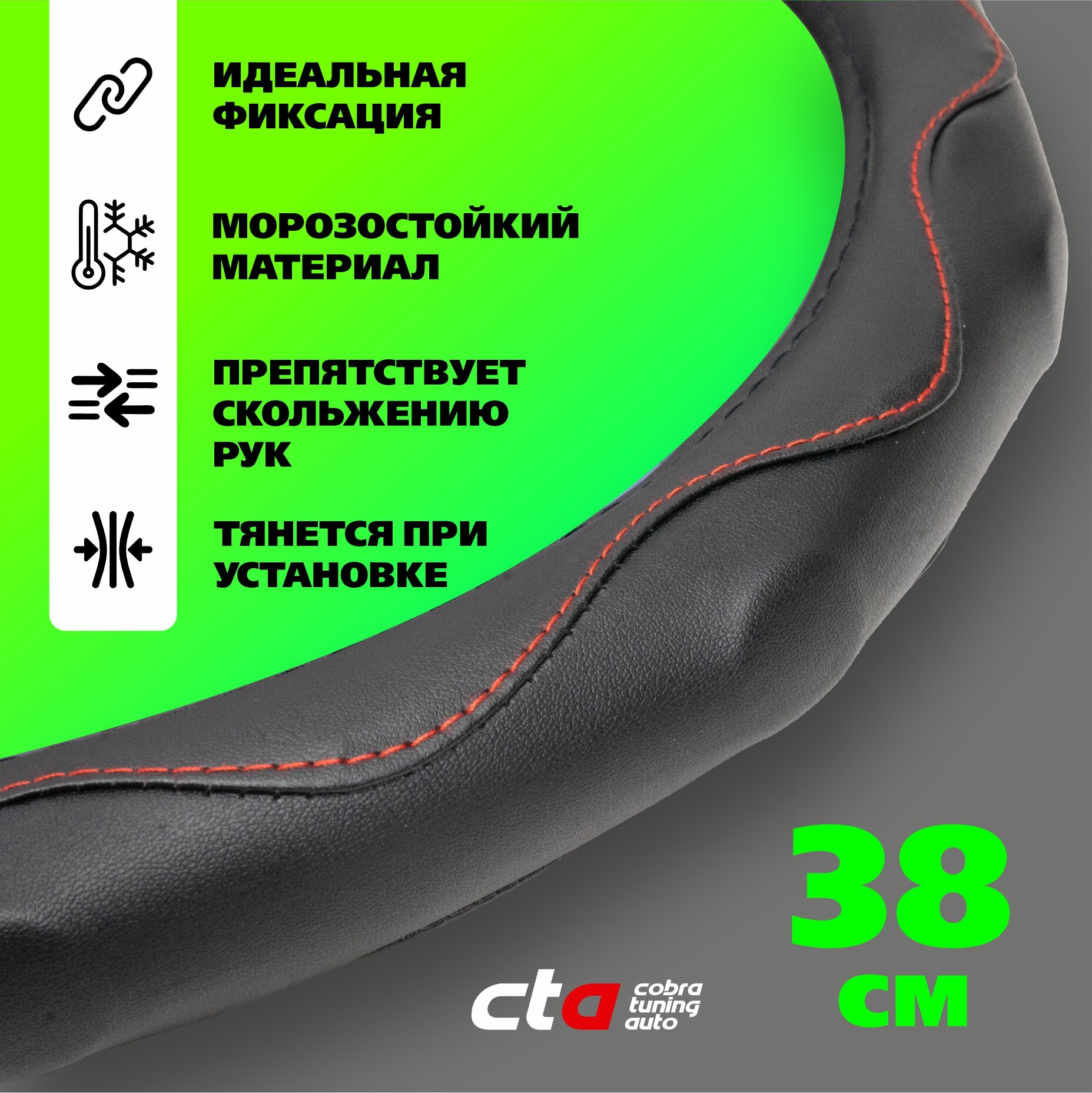 Оплетка (чехол) на руль автомобиля Ваз, Лада, Иномарки, размер М (38см) цвет Черный, красная строчка волна информация: