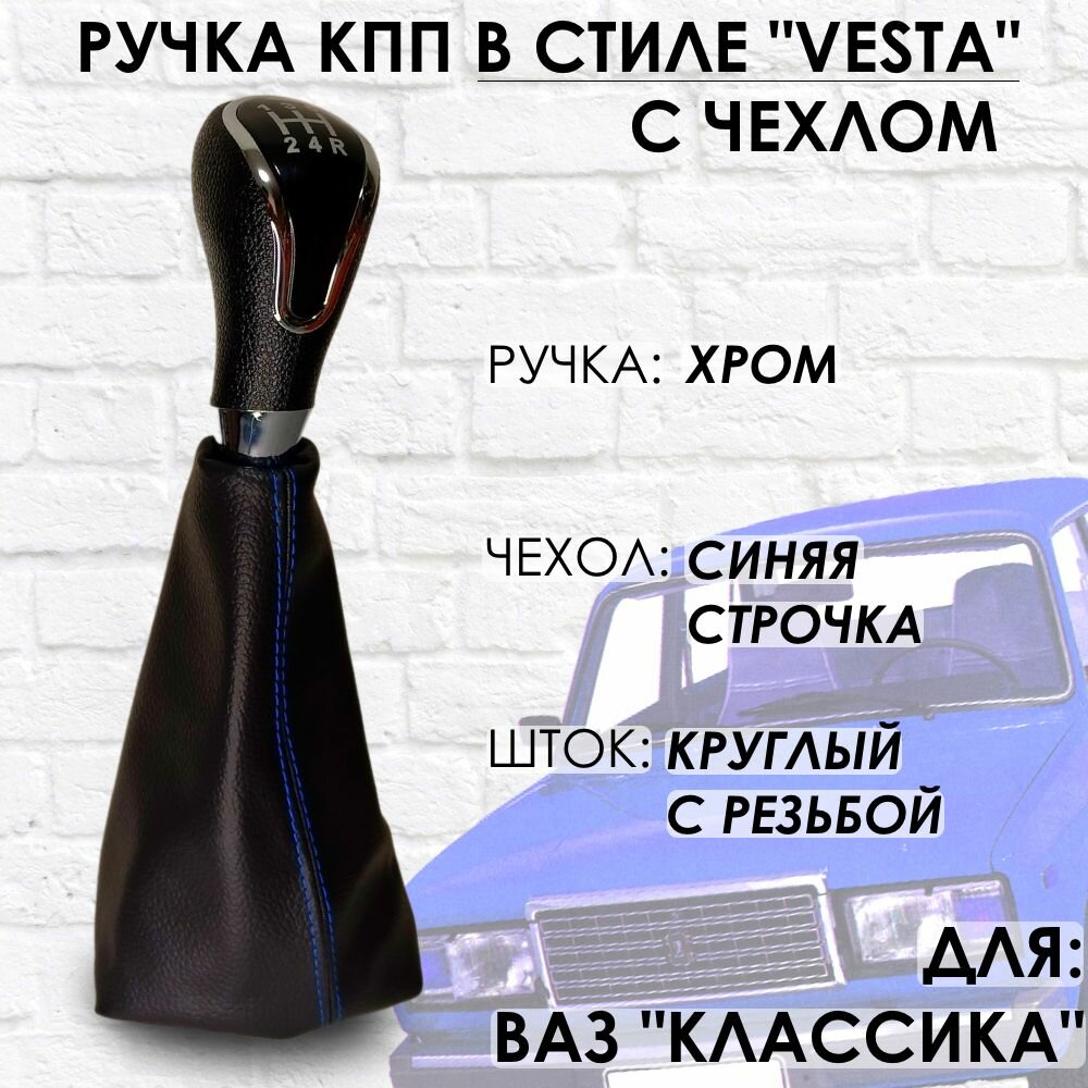 Ручка КПП с чехлом ВАЗ 2101-2107 "Веста стиль" (Хром/синяя строчка) информация: