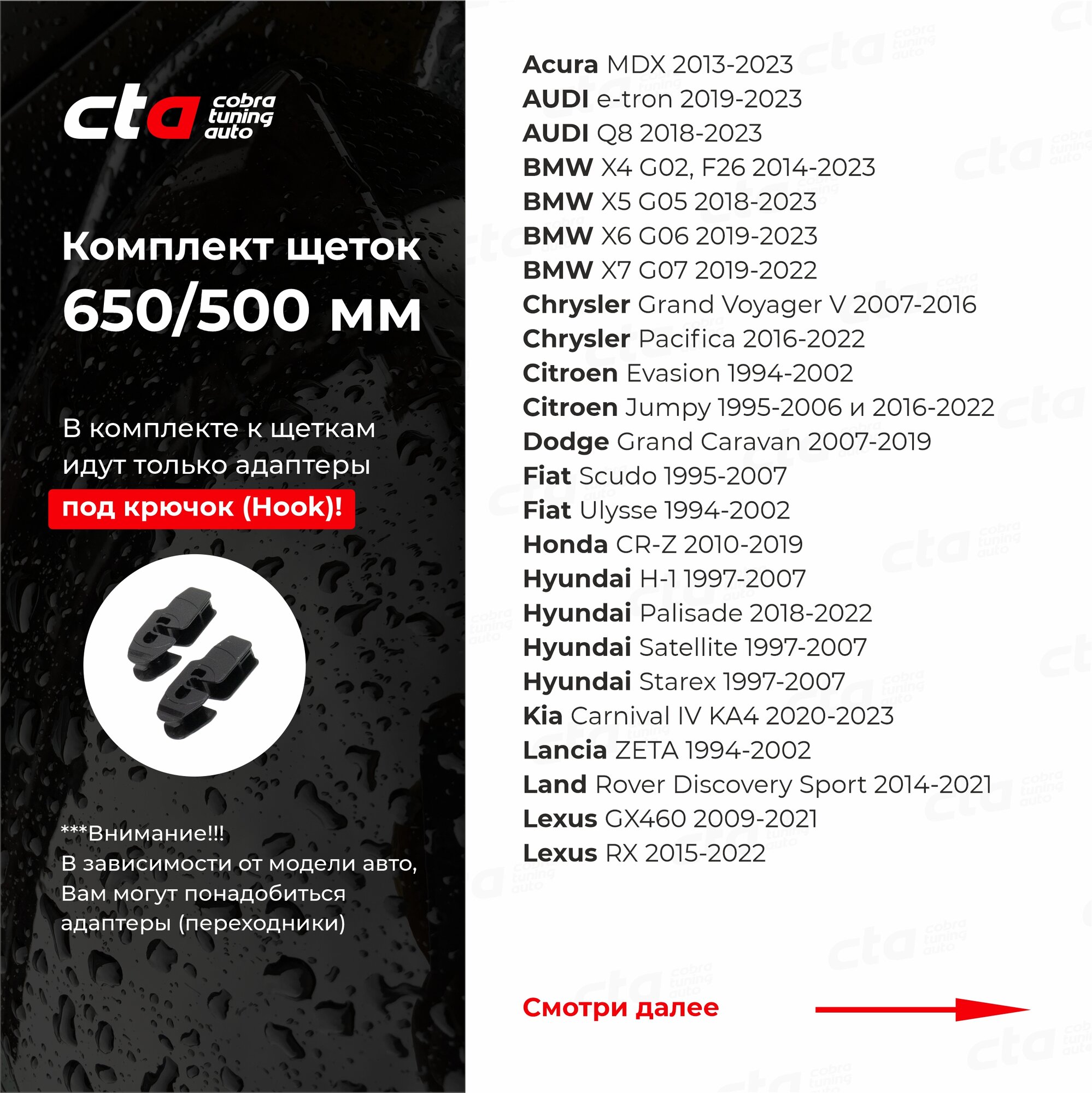 | Подробная комплектация | Гибридные автомобильные щетки, комплект из 2 шт. + 2 адаптера крючок (hook) |
