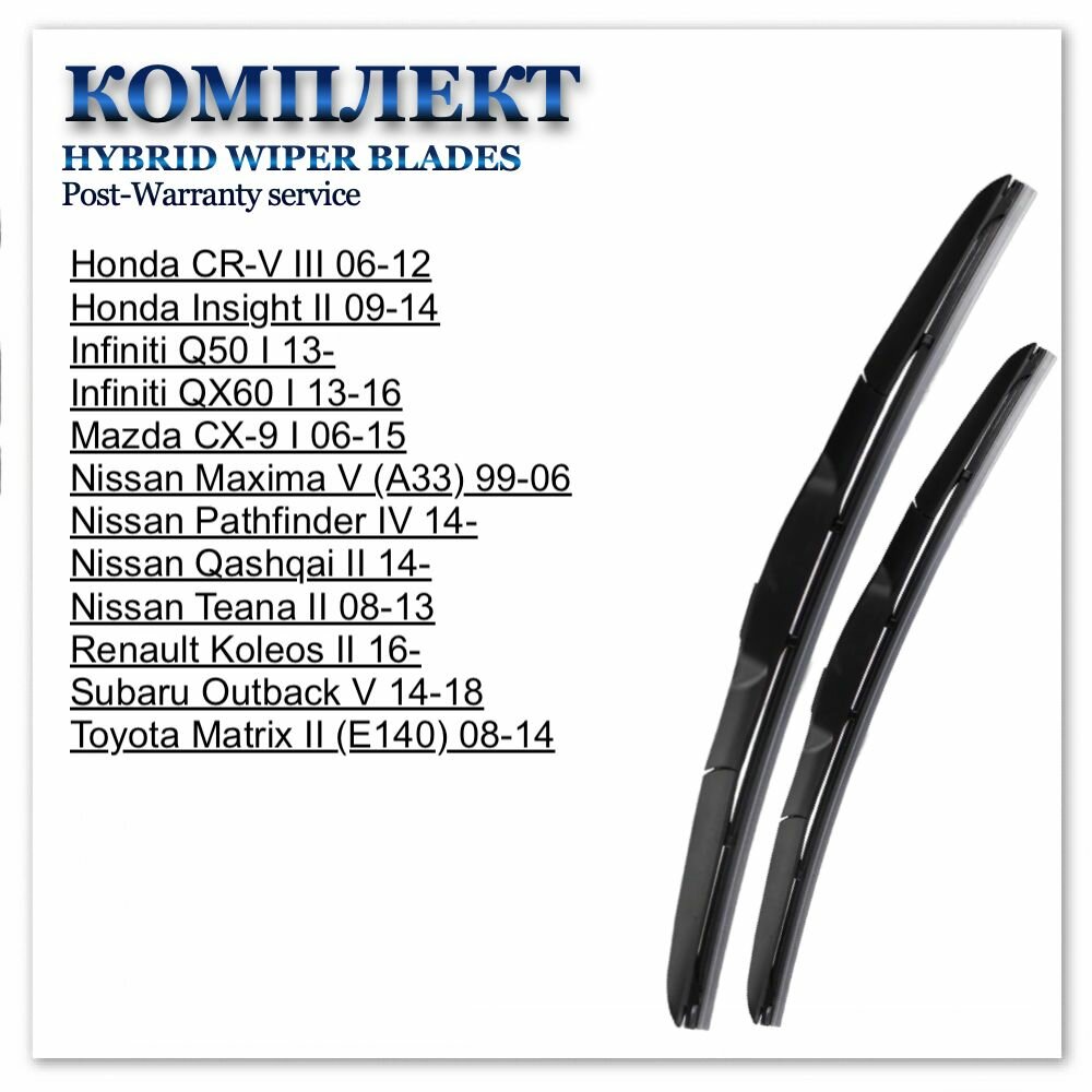 Комплект гибридных щеток стеклоочистителя 650-430мм. Honda CR-V; Mazda CX-9; Nissan Qashqai/Teana; Renault Koleos; Subaru Outback; Toyota Matrix информация: