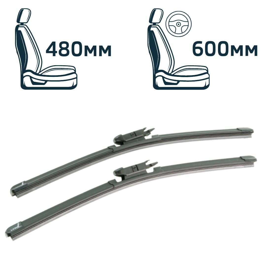 Дворники Renault Koleos (1) HY0 / Рено Колеос рест. 2011 / 2012 / 2013 Щетки стеклоочистителя бескаркасные автомобильные LYNXauto 600мм-480мм к-т 2шт. информация: