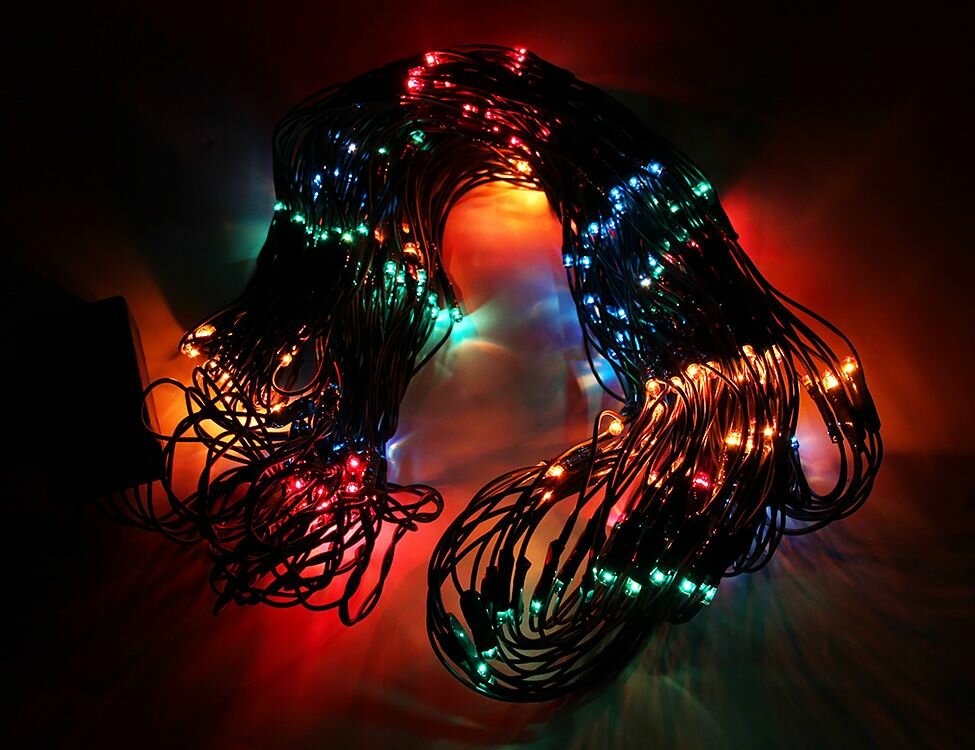 VEGAS Электрогирлянда "Нить" 200 разноцветных LED ламп, контроллер 8 режимов, зеленый провод, 20 м, 220 v /20